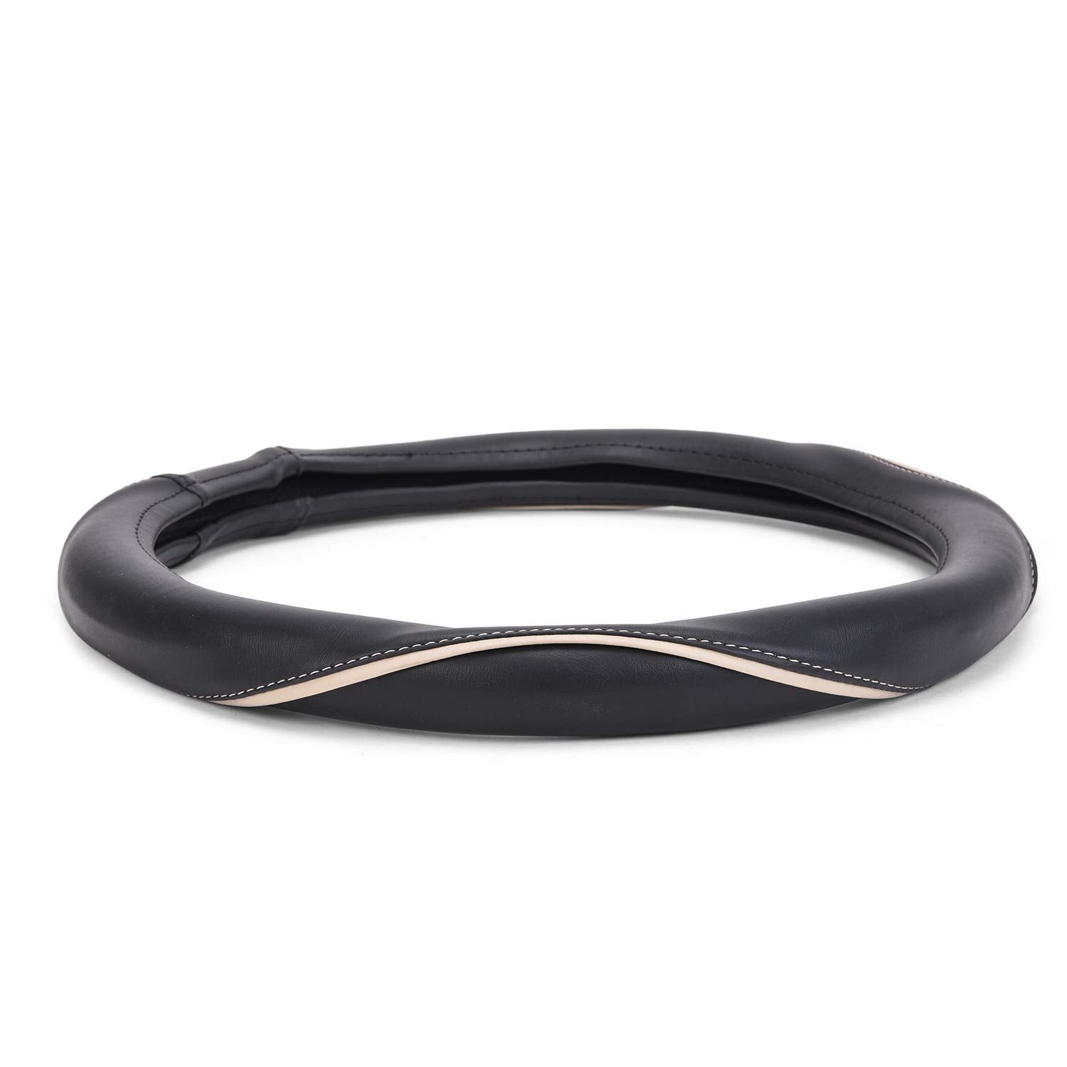 ExtraGripWave Anti-Slip Car Steering Wheel Cover Compatible with Ford Figo (2010-2014), (Black/Beige)