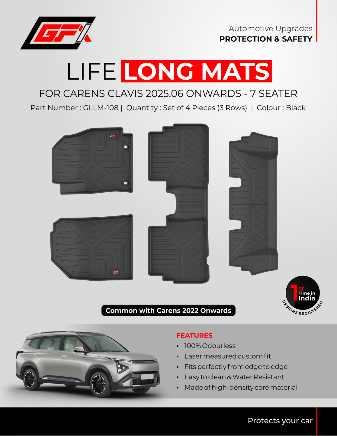 GFX Life Long Floor Mats Compatible with Kia Carens Clavis 2025 Onwards