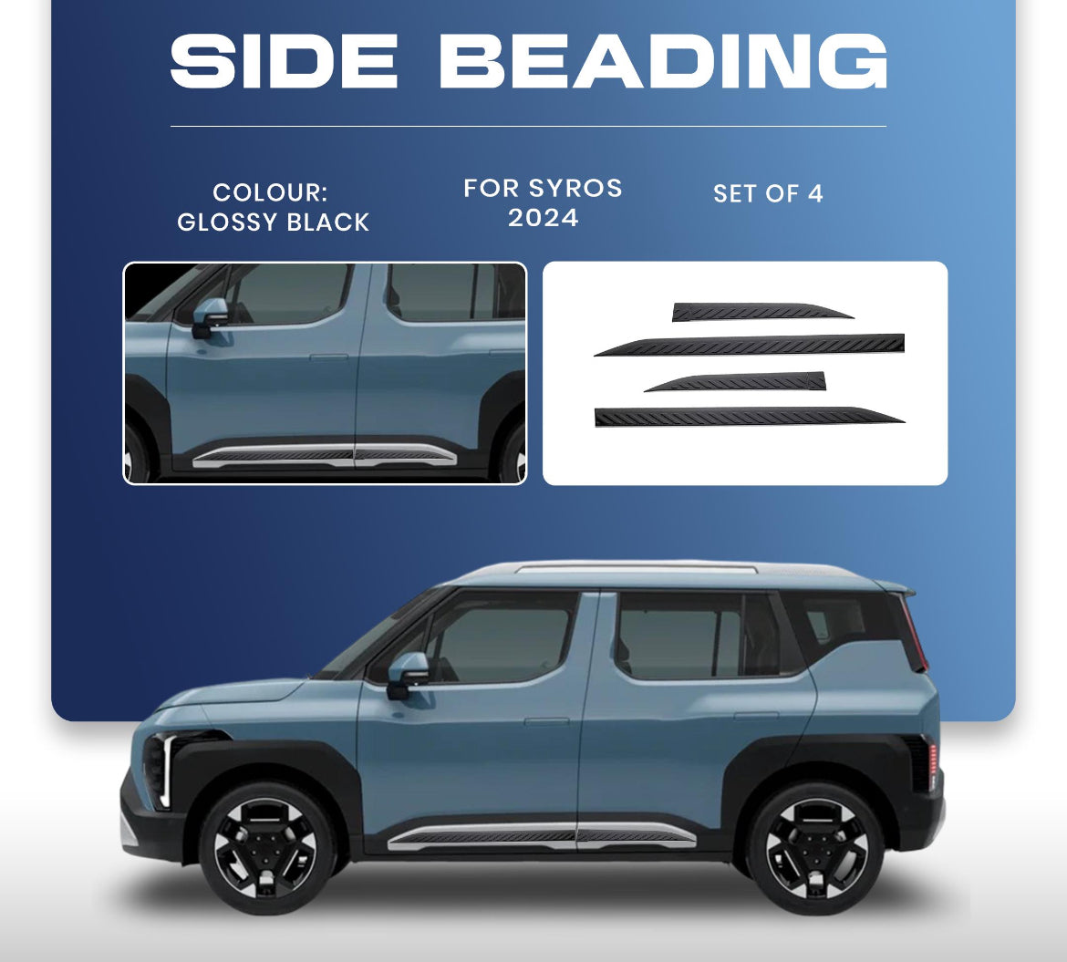 Glossy Black Body Side Cladding Compatible With Kia Syros 2025 Onwards - Set of 4 pcs.