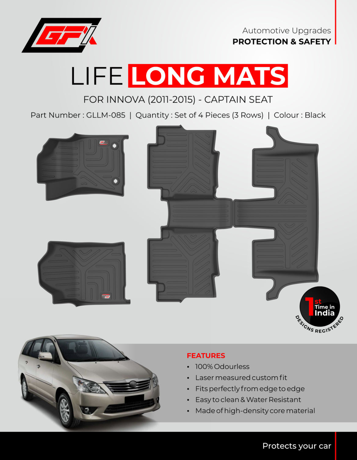 GFX Car Floor Mats Premium Life Long Foot Mats Compatible with Toyota Innova (2006-2015) 7 Seater Manual (Black)