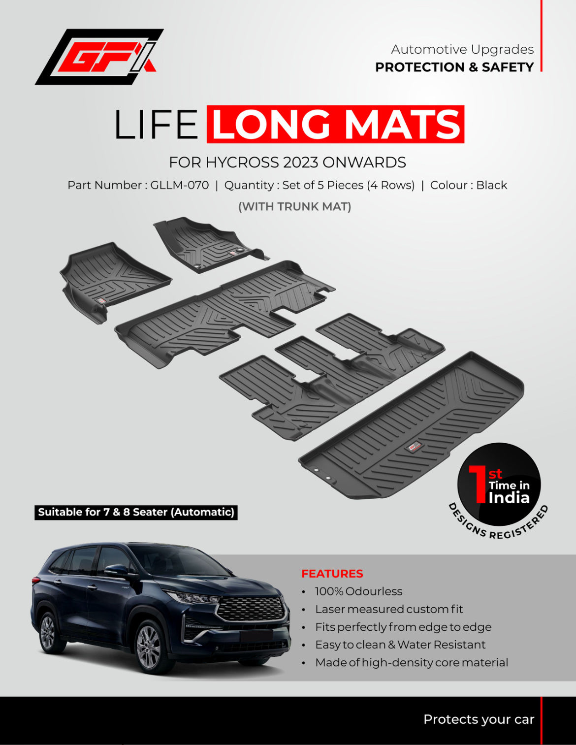 GFX Car Floor Mats Premium Life Long Foot Mats Compatible with Maruti Suzuki Invicto 2023 Onwards (Black), TPV